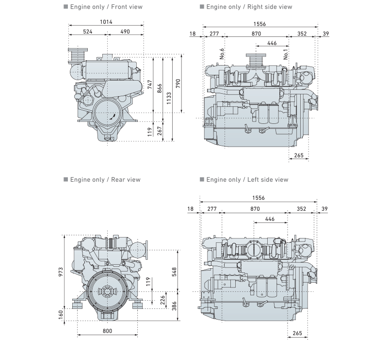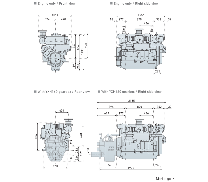 Yanmar 6HYM-serien – Dimensjoner og ytelseskurver