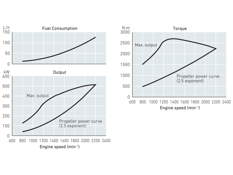 Yanmar 6HYM-WET (515 kW) – Dimensjoner og ytelseskurver