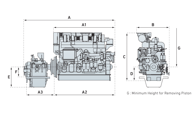 | 6N21A-UW (736 kW) | YX-1000C | 4086 | 2776 | 2733 | 1232 | 1420 | 2081 | 601 | 450 | – | 1802 | 10643 |
